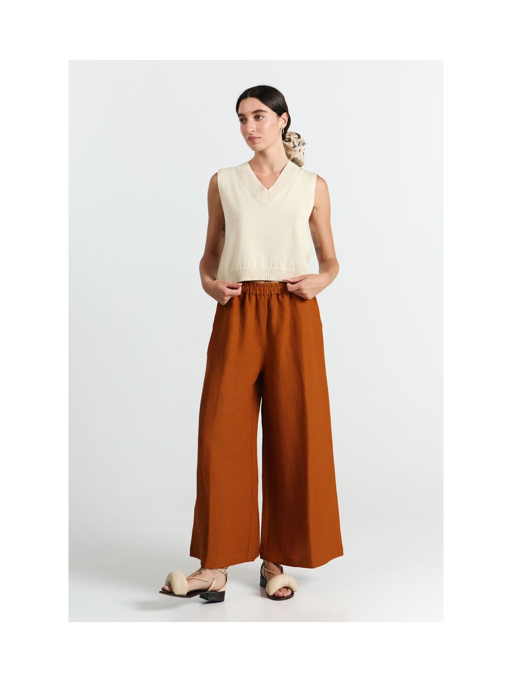 Dámské cullote kalhoty s příměsí lnu „DADU PANTS clay“
