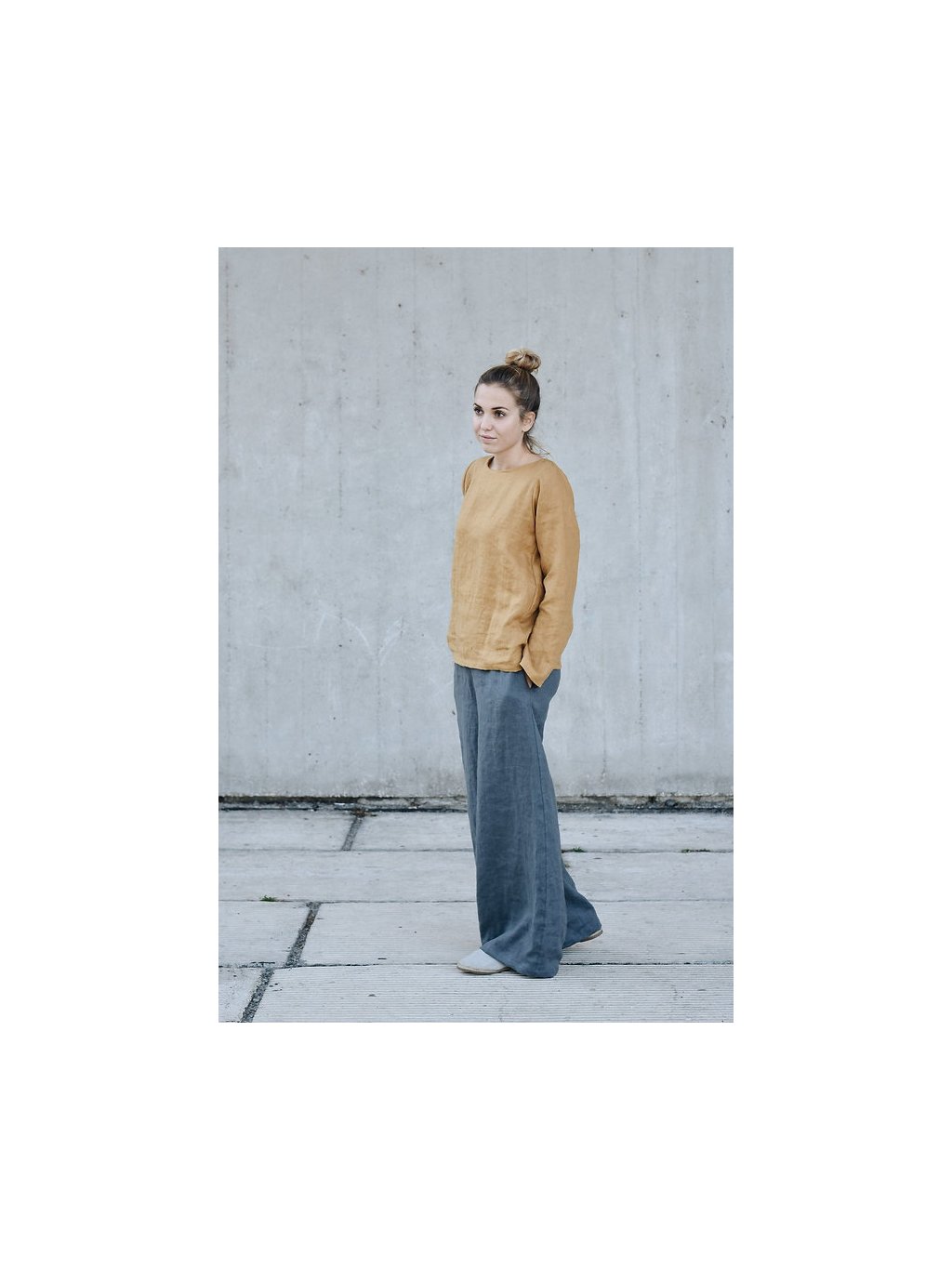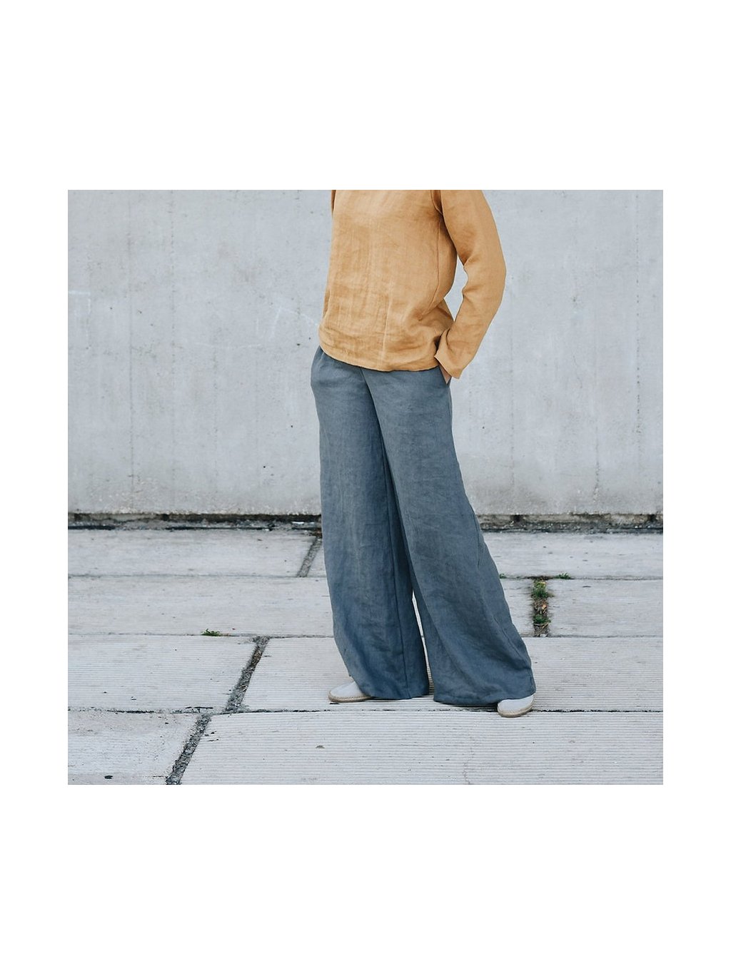 Dámské lněné široké kalhoty "WIDE LEG PANTS"