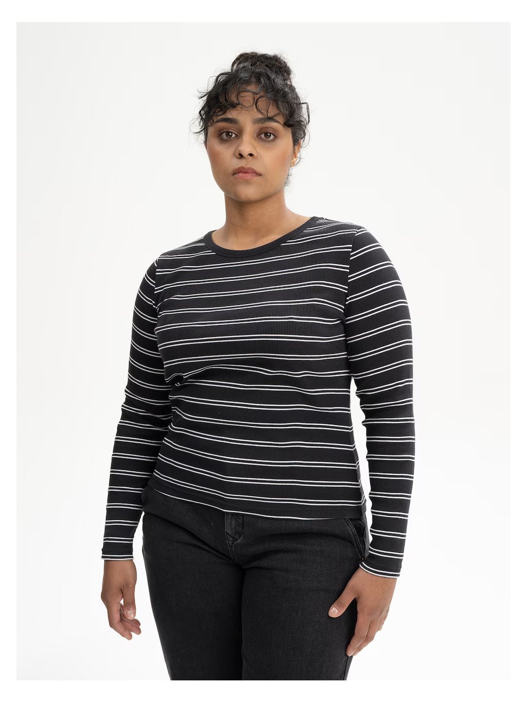 Dámské žebrované tričko s dlouhým rukávem "MEHAR black-white stripes"