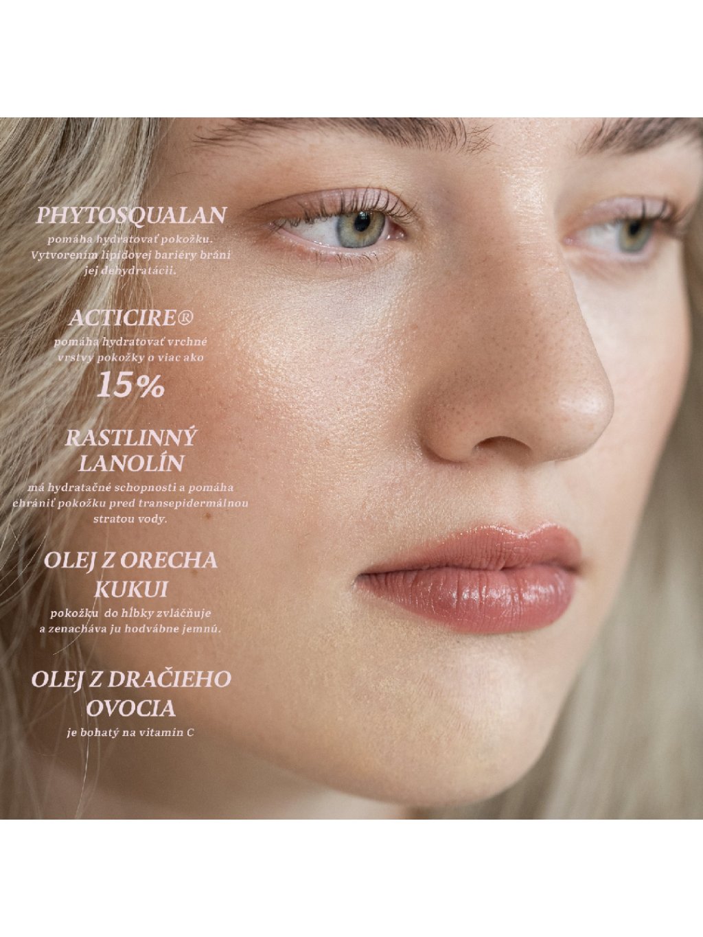 phytosqualan – pomáhá hydratovat kůži. Vytvořením lipidové bariéry brání její dehydrataci.