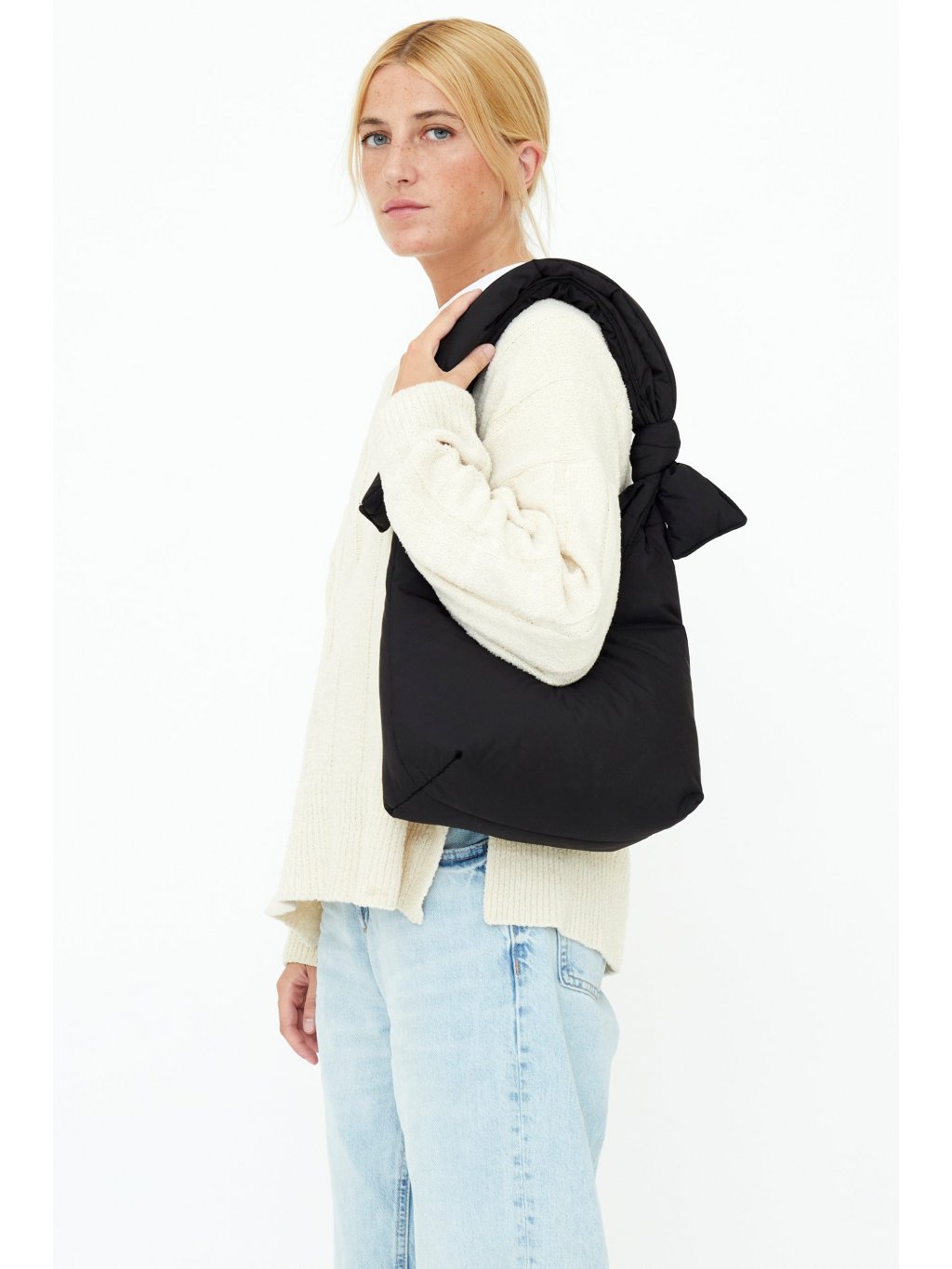 Malá černá taška přes rameno "Biwa Puffy Mini Black Tech" z recyklovaných PET lahví