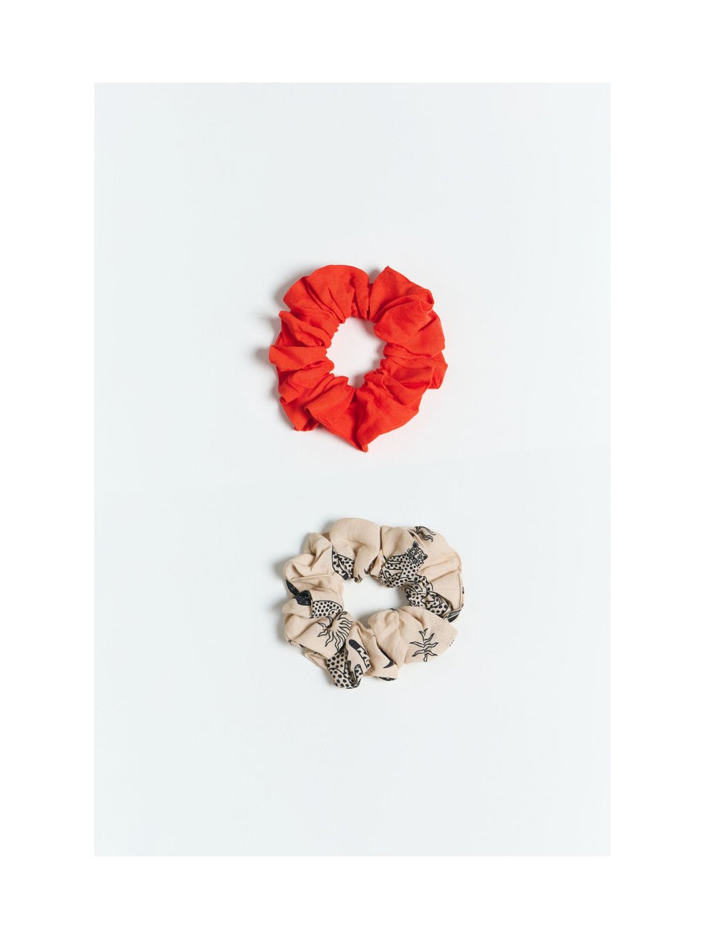 Set gumiček s přímesí lnu „SCRUNCHIE BATAN red + fauna“