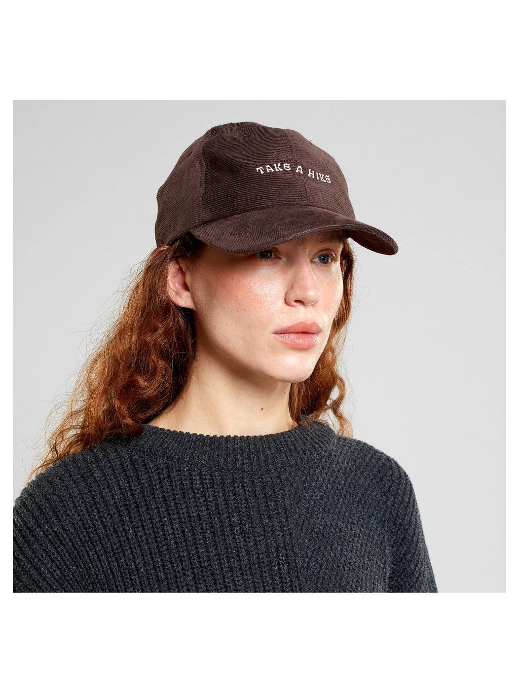Unisex hnědá manšestrová kšiltovka s nápisem "Soft Cap Corduroy Take A Hike Coffee Brown"