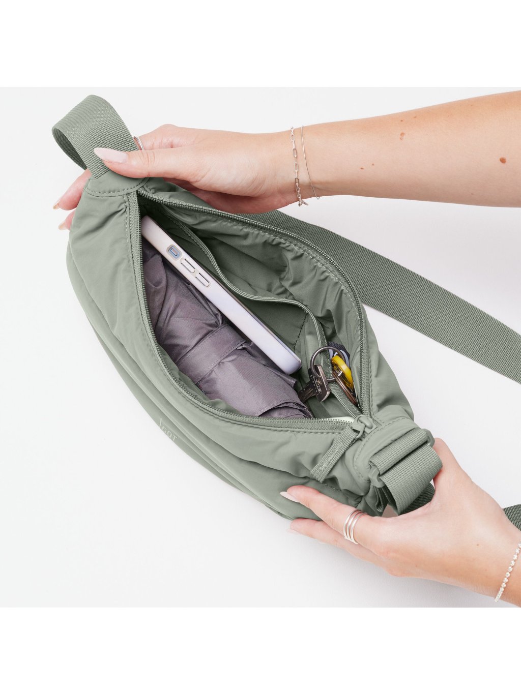 Zelená kabelka "PUFFER MOON BAG SMALL MONOCHROME bass" z recyklovaných plastů z oceánu