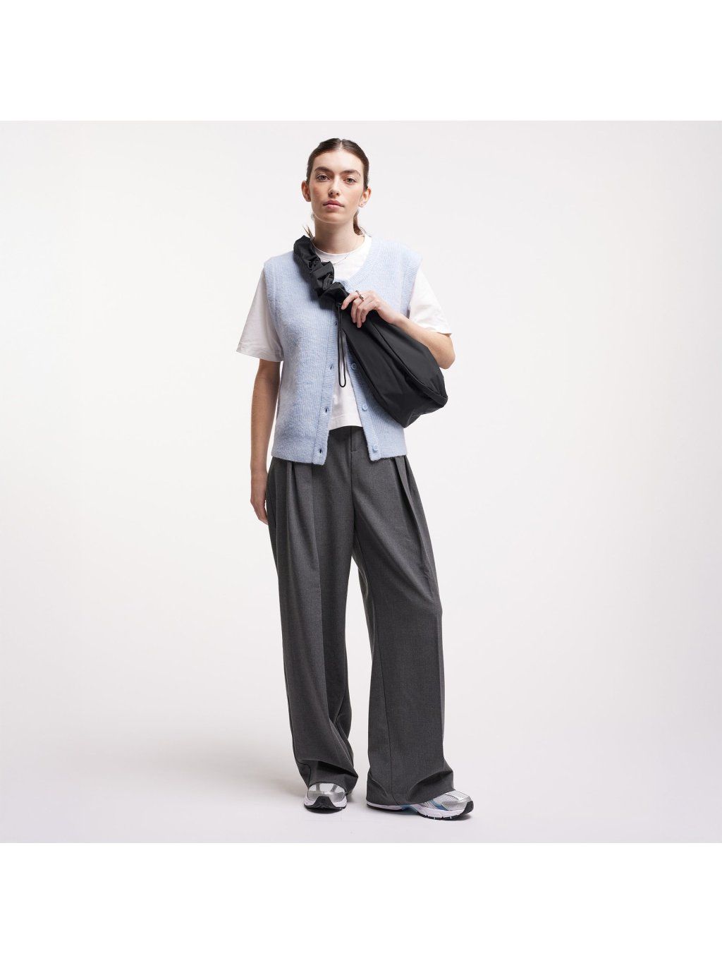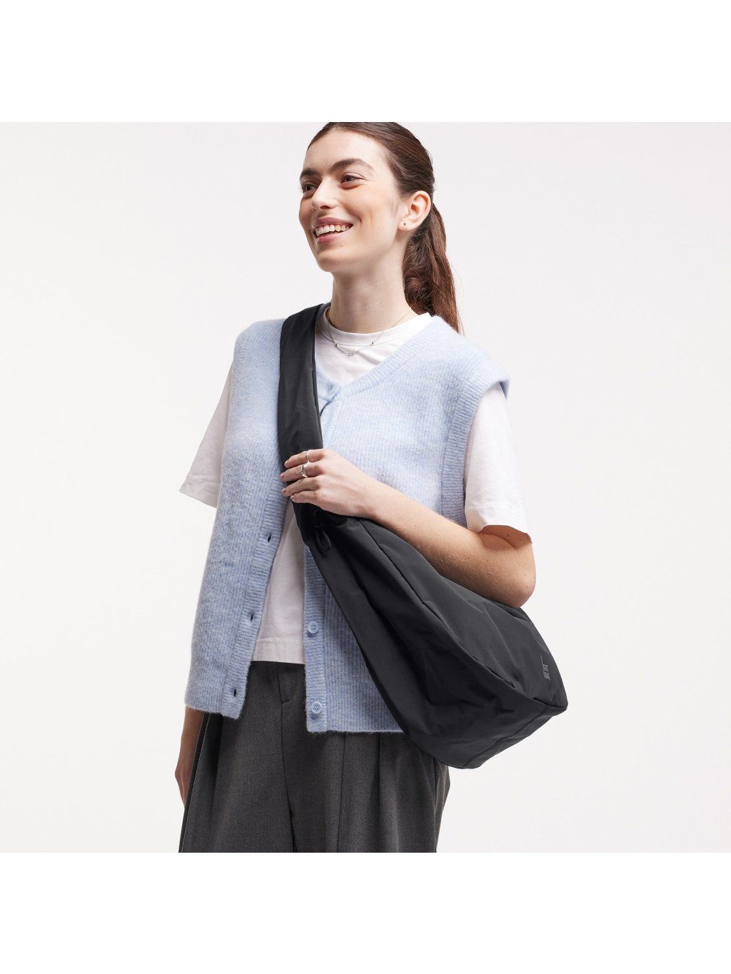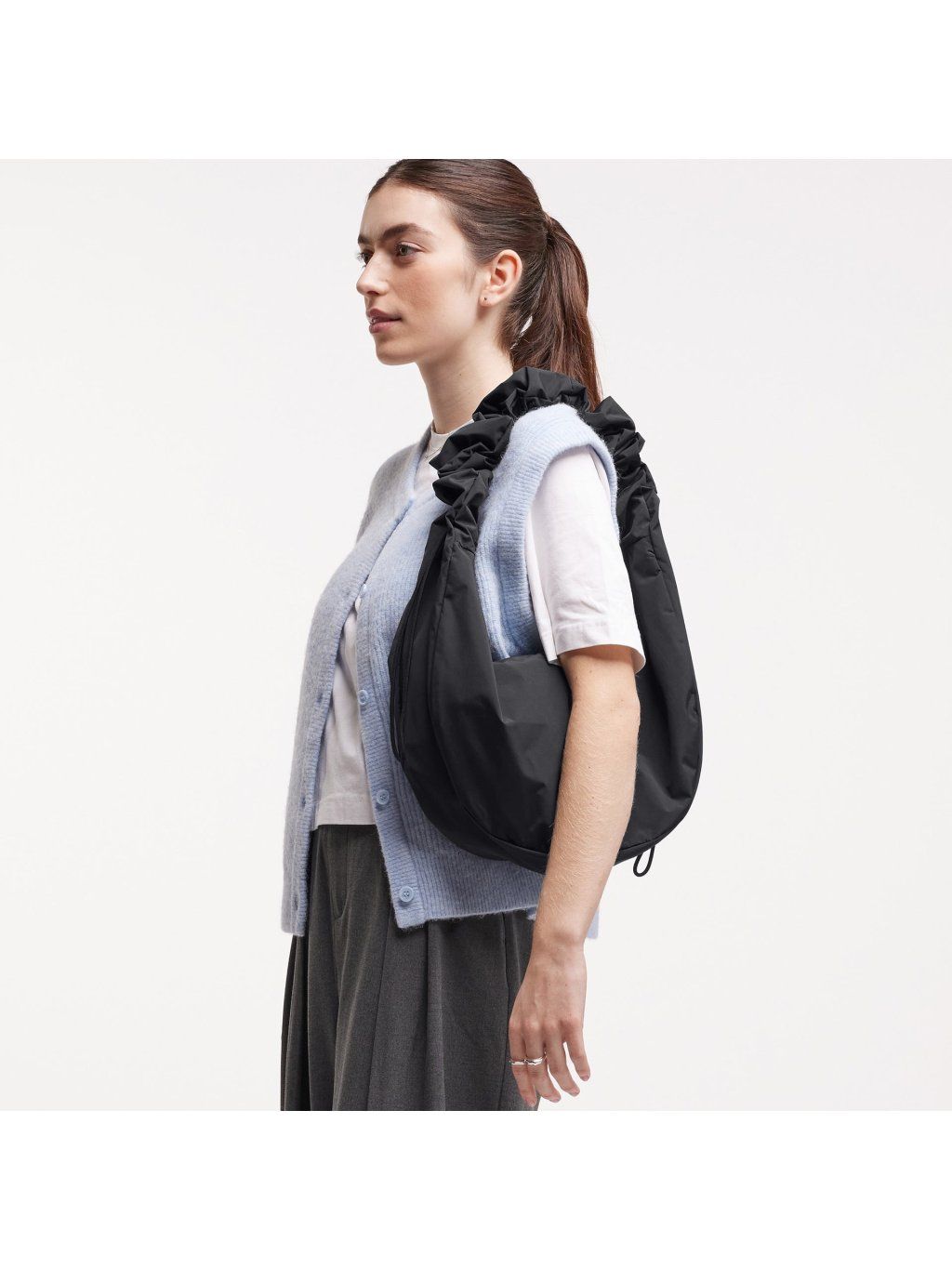 Černá kabelka přes rameno "MOON BAG RUFFLE black" z recyklovaných plastů z oceánu